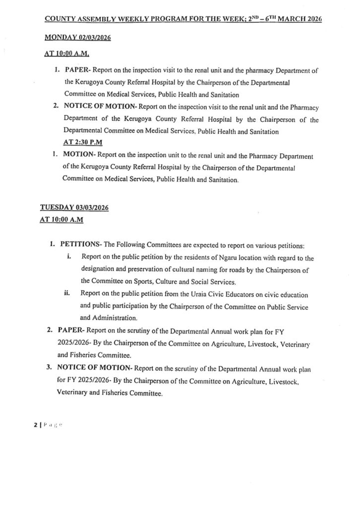 The Department of Health received the lion’s share of the allocation, with KES 2.338 billion earmarked for recurrent expenditure and an additional KES 494 million for development. Significant investments will go towards upgrading Kimbimbi and Kianyaga Level Four Hospitals, which have been allocated KES 240 million and KES 180 million respectively.